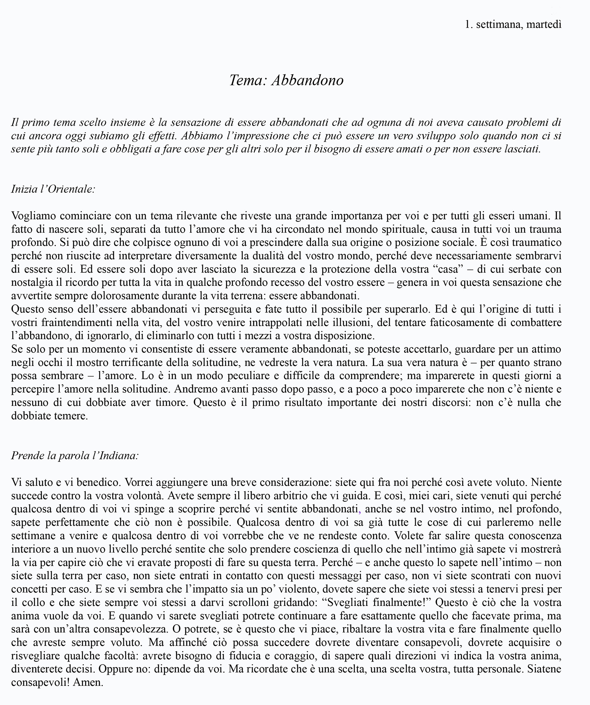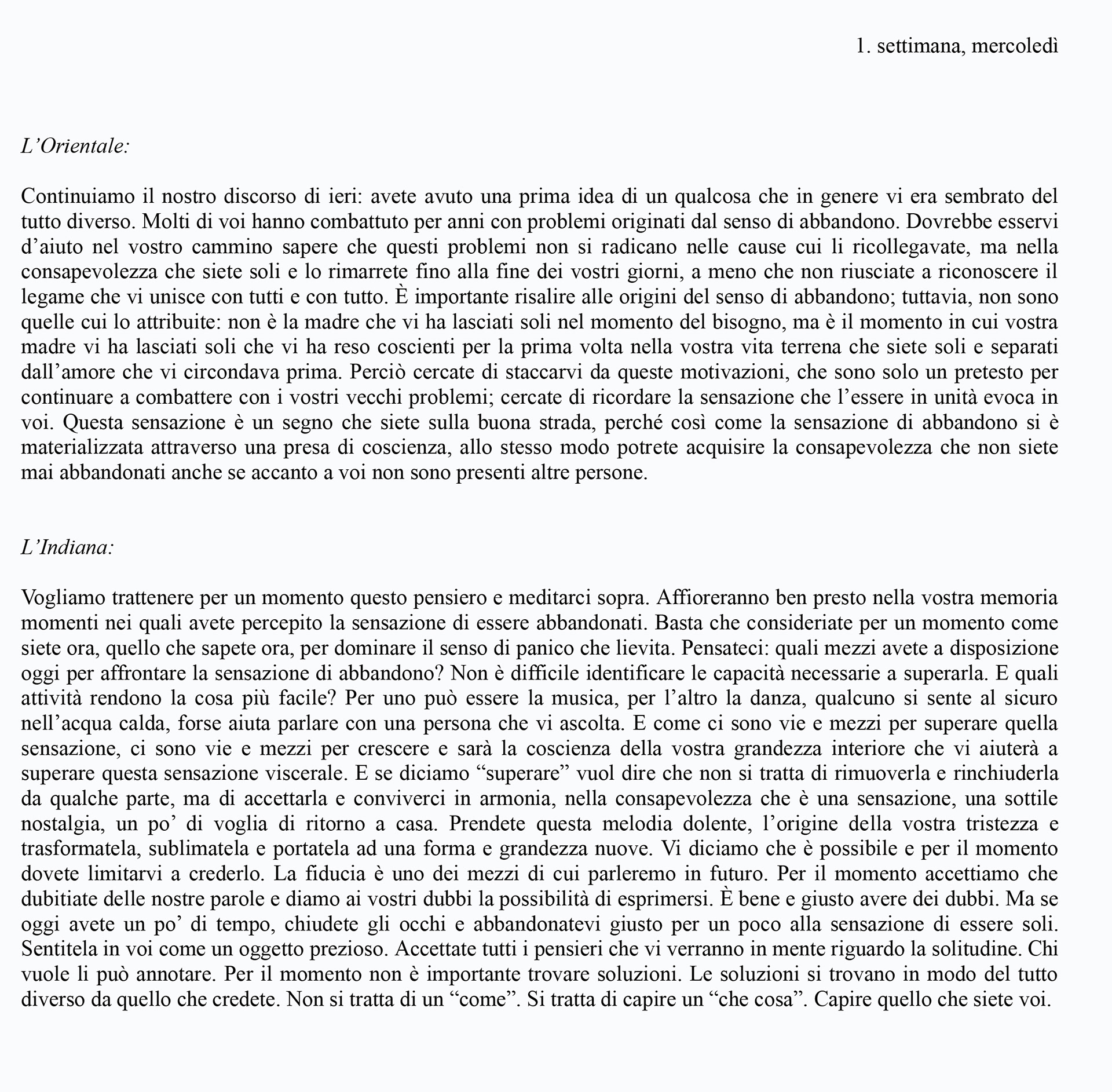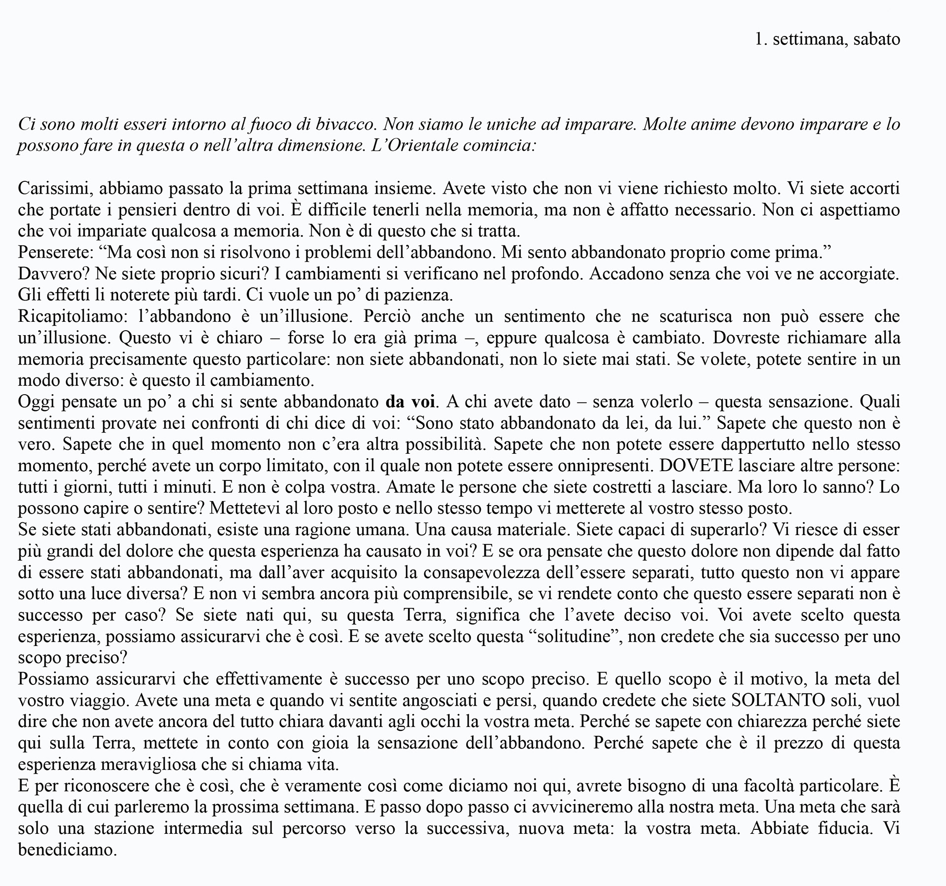Prima settimana